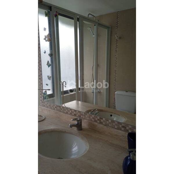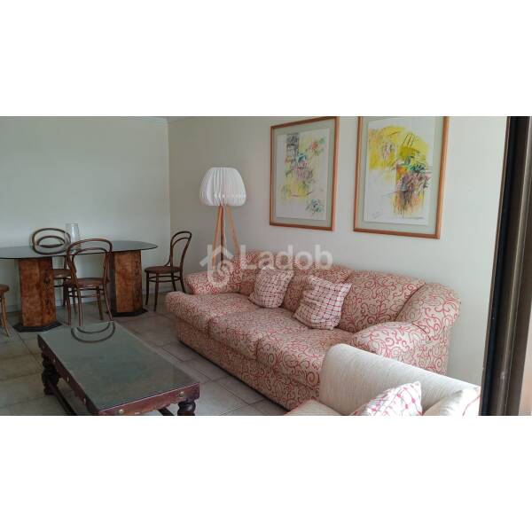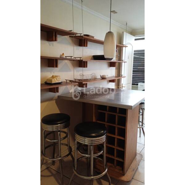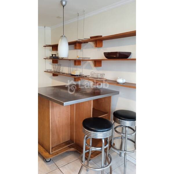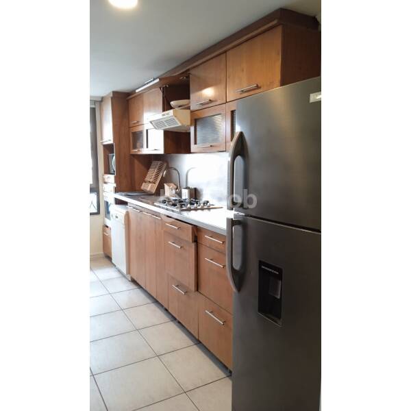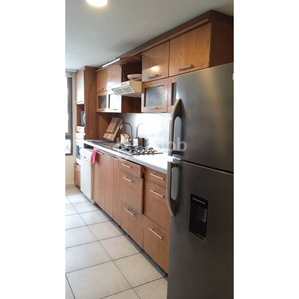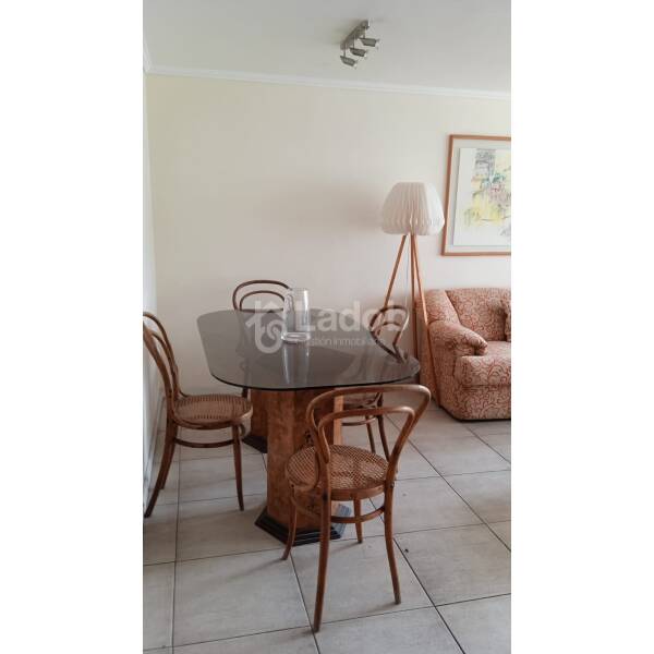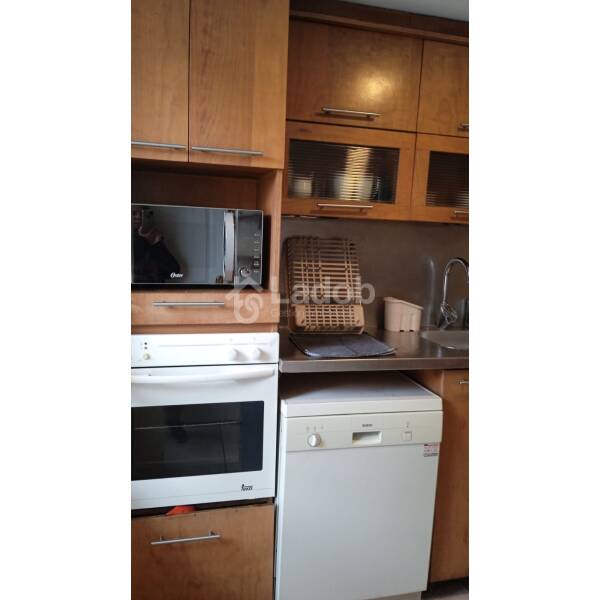Distribución: Hall de entrada, living comedor con salida a una terraza pequeña, dormitorio amplio con una salita de estar o para uso de escritorio, baño en suite, buenos closets, baño visita, cocina amplia completamente equipada con horno eléctrico, microondas, encimera a gas, lavavajilla, refrigerador, mesa comedor con 4 banquetas, cubierta de muebles de cocina revertidas en acero inoxidable, logia con lavadora y secadora, aire acondicionado.