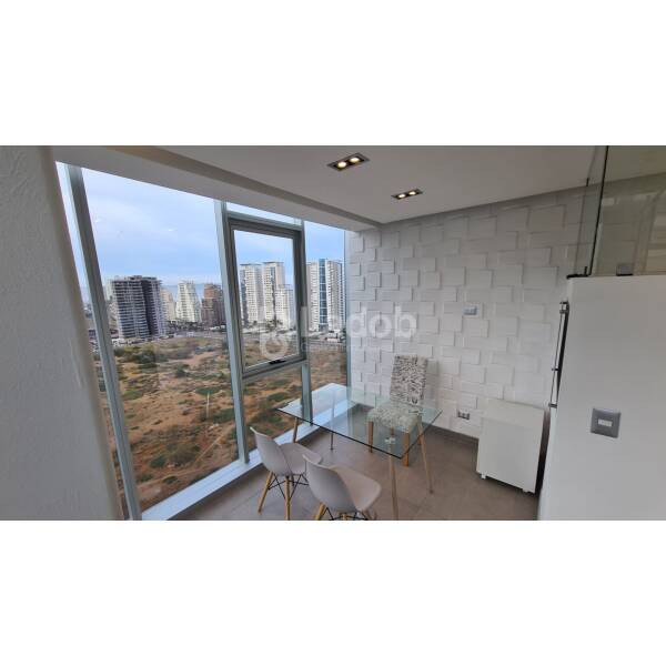 Moderna oficina en arriendo en Bosques de Montemar, edificio SOHO.Oficina amoblada con 3 módulos y sala de reuniones. Cuenta con 1 estacionamiento. Conserjería 24hrs.Valor de gastos comunes aproximados de 114.000.-